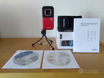 Vendesi videocamera ultra compatta (grande quanto un cellulare vecchia generazione) Toshiba Camileo Bw-20, sensore 5 milioni di pixel, in ottime condizioni, completa di alimentatore a rete originale, cavi x connessione al computer x scaricare i video girati, manuale e dischi CD con programmi Toshiba. Subacquea fino a 5 metri, comoda da portare nel taschino senza tanti ingombri. In allegato le caratteristiche della videocamera:
