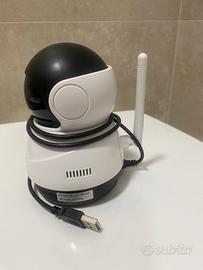 Videocamera perfettamente funzionante. Visione notturna e utilizzabile con app per girarla di 360 gradi o per parlare nella stanza dove si trova.
