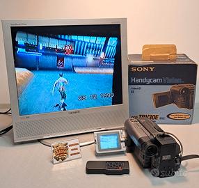 Come da titolo inserzione vendo questa bellissima Handycam Vision / videocamera PAL recorder Video8 digitale di marca / casa Sony modello CCD-TRV30E, avente caratteristiche di digital program editing, 12x di zoom ottico e schermo LCD 3" a colori. Presenta uscite video e audio rca composite e funziona tramite l'alimentatore / caricabatterie originale ovviamente presente, oppure tramite le batterie (che mantengono la carica molto poco!). L'oggetto è in OTTIME CONDIZIONI GENERALI, utilizzato pochissimo, testato e perfettamente funzionante in tutto e per tutto. NOTA BENE: L'apparecchio è stato revisionato in laboratorio per quanto riguarda la manutenzione della parte elettronica e della parte meccanica (pulizia testine, lubrificazione ecc.) per un utilizzo preciso e duraturo nel tempo. E' inoltre presente il mini telecomando Sony originale, i vari manuali di istruzioni, gli accessori vari (supporto per cavalletto, panno pulizia, batteria tampone nuova), un cavo rca e un adattatore scart/rca per il collegamento dell'apparecchio alla tv, l'alimentatore caricabatteria e 2 batterie originali, borsa / case Sony per trasporto e la SCATOLA / IMBALLO ORIGINALE. AVENDO LA VIDEOCAMERA ANCHE FUNZIONE DI PLAYER / VIDEOREGISTRATORE, E' OTTIMA PER EFFETTUARE RIVERSAMENTI, ACQUISIZIONE E SALVATAGGIO IN DIGITALE O SEMPLICEMENTE PER RIVEDERVI LE VOSTRE VECCHIE VIDEOCASSETTE. Non è ovviamente compreso il monitor tv in quanto utilizzato solamente per testare l'apparecchio. Vedi comunque attentamente tutte le foto! Vera occasione per amatori e collezionisti del genere. Per l'oggetto è previsto il ritiro in zona Rovereto (Trento) con conseguente pagamento alla consegna. In alternativa posso effettuare la spedizione tramite posta o corriere sicurissimo e tracciabile al costo di euro 10 (spedizione + imballaggio). Sono disponibile per ogni vostra eventuale domanda e per inviarvi, qualora lo desideriate, un archivio di foto dell'oggetto. Info anche per telefono o whatsapp: 328-5765428
