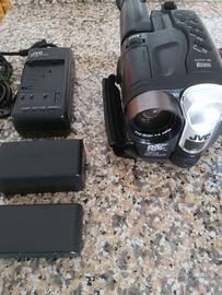 Vendo videocamera vintage VHS di marca JVC GR-AXM40,completa di carica batteria,due batterie, cavi di collegamento, borsa custodia (nuova).