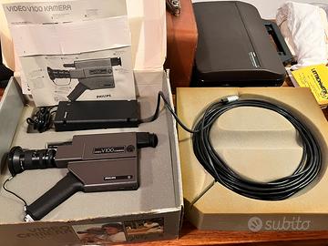 Vendo bellissima videocamera colori Vintage Philips V100 come nuova adoperata qualche volta, accessoriata con suo cavo originale prolunga, alimentatore/trasformatore,. scatola originale. Negli altri annunci del mio profilo c’è anche in vendita un registratore preposto alla registrazione con la videocamera V100 . Si cercano collezionisti. Prezzo 150 euro trattabili.