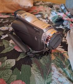 telecamera samsung usata in ottime condizioni difettata sul lato della cintaper tenere la telecamera (come da foto), carica batterie inclusa, tracolla inclusa, borsetta inclusa, regalo cavaletto come da foto. Manca scheda SD