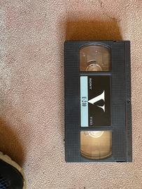 Videocassette VHS registrabili contenenti registrazioni TV con custodie.