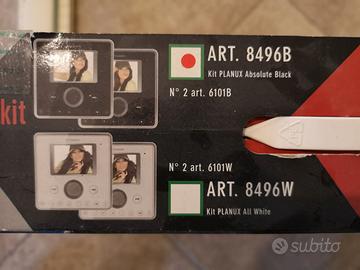 Il kit comprende: 2 monitor planux absolute black comelit 6101b, 2 staffe comelit 6114kc, 2 scatole da incasso comelit 6117, 1 trasformatore comelit 1205/b, 1 posto esterno comelit 4876kc , 2 morsetti di derivazione comelit 1214kc e 1 morsetto di terminazione comelit 1216