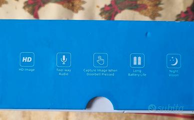 Aperto mai usato Winnes Smart Home Video Doorbell, un sistema di videocitofono wireless che non richiede Wi-Fi o applicazioni mobili per funzionare. Il kit include un'unità esterna con telecamera e un monitor interno da 4,3 pollici per la visualizzazione in tempo reale. Caratteristiche principali Schermo: Monitor IPS da 4,3 pollici con risoluzione HD (fino a 1080p in alcuni modelli). Telecamera: Obiettivo ultra-grandangolare a 170° per una visuale ampia dell'ingresso. Audio: Supporta la comunicazione bidirezionale, permettendo di parlare con i visitatori senza aprire la porta. Visione Notturna: Dotato di LED per la visione notturna automatica in condizioni di scarsa illuminazione. Batteria: L'unità esterna ha una batteria ricaricabile da 1000mAh (durata stimata di 3-4 mesi); il monitor interno ha una batteria da 400mAh ma deve rimanere preferibilmente collegato all'alimentazione USB. Installazione: Facile montaggio senza fili; l'unità esterna è classificata IP65 (resistente alla pioggia). Archiviazione: Supporta schede MicroSD (8GB-32GB) per salvare registrazioni e foto dei visitatori.