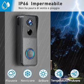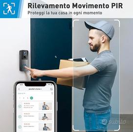 🔋100% Wireless & Batteria Ricaricabile: Il nostro video citofono wifi è dotato di batteria ricaricabile e campanello(Chime) Monitora il livello della batteria tramite l'app del telefono e ricevi campanelli in stanze diverse grazie al video campanello senza fili . Il citofono senza fili contiene una batteria da 4800 mAh che non ha bisogno di essere ricaricata frequentemente e non è influenzata dalla presa, rendendo l'installazione più comoda.