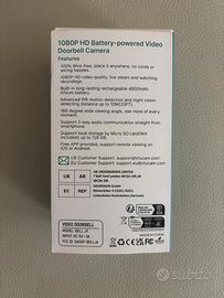 XTU Videocitofono WiFi Senza Fili con Allarme Antifurto, 1080P FHD Video Campanello con Suoneria, Rilevamento Umano PIR, Audio Bidirezionale, Batteria 4800mAh, Supporta Scheda SD e Cloud, IP66