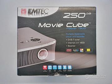 Movie Cube Theater T800diEmtecè l’innovativo hard disk multimediale grazie al quale è possibile trasformare l’intera parete del soggiorno in un immenso schermo per vedere video e foto sul grande schermo. Dotato di Digitale terrestre integrato,Movie Cube Theatre T800è un videoproiettore portatile che consente di vedere le immagini su qualunque superficie. Grazie alla funzione TV recording e all’hard disk da 2,5” integrato, T800 è il dispositivo ideale per registrare i programmi, archiviare e condividere ogni tipo di file multimediale.