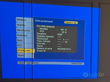 Vendo videoproiettore Epson EB-S04 completo di borsa,telecomando e cavi originali vga e un cavo Hd. Utilizzato pochissimo per delle riunioni. Ore totali 500.