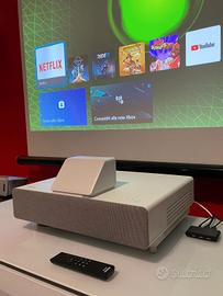 Vendo proiettore Epson EH-LS500W a tiro ultracorto, perfettamente funzionante, completo di tutti gli accessori originali e telo in omaggio.