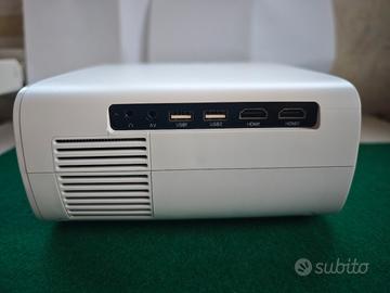 Vendo proiettore della Wimius modello S26, usato pochissimo, praticamente nuovo, Full HD, 1080p reale, contrasto 16000:1, Wi Fi, Bluetooth 5.2, 20.000 lumen, porte hdmi,usb,av e uscita cuffie, regolazione su 4 punti dell'immagine, con possibilità di collegare lo smartphone e vedere sul proiettore lo schermo. Come da foto insieme al proiettore ci saranno manuale di istruzioni, telecomando, kit di pulizia e zainetto per il trasporto