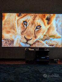 Vendo per cambio abitazione e mancanza di spazio adeguato (sala non fumatori, montato a soffitto). Prezzo in linea con il mercato, aperto a possibili scambi , conguagli , ecc ecc. Il proiettore è in ottime condizioni estetiche e perfettamente funzionante, senza alcun difetto. • Ore Lampada: appena montata nuova, pochissime ore. • Accessori: Inclusi telecomando originale (con retroilluminazione) e manuale utente originale. 🔥 Prestazioni e Caratteristiche Uniche (L'Eccellenza JVC) Questo proiettore High-End JVC è la scelta ideale per chi cerca un'esperienza Home Cinema di altissimo livello, combinando neri profondi e immagini dettagliate incredibili in 4K e HDR. • Risoluzione e Contrasto: Offre una risoluzione 4K UHD 3840x2160 e un incredibile Contrasto Nativo di 130.000:1 ed un contrasto dinamico di 1.300.000:1 il marchio di fabbrica della tecnologia D-ILA di JVC per neri tra i piu profondi in assoluto. • Luminosità: Con 1.900 Ansi Lumen, garantisce immagini vivide e brillanti, permettendo di raggiungere una larghezza schermo fino a 443 cm in ambiente oscurato. Per una visione ottimale in presenza di luce (o per schermi più piccoli), la larghezza ideale è fino a 295 cm. • Compatibilità Totale: Pienamente compatibile con segnali Full HD 1080p, 4K e supporta il formato 3D . • Silenziosità Eccezionale: Il rumore operativo è di soli 21 dB, rendendo la proiezione incredibilmente silenziosa e non disturbando l'audio del film. Spedizione possibile ma preferibile ritiro a mano dato il peso del prodotto.