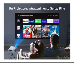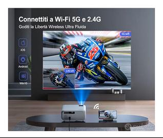 Videoproiettore WiMiUS con supporto Full HD 1080p e 4K. Ideale per serate cinema. Proiettore 5G WiFi Bluetooth, 18000 Lumen 1080P Full HD, WiMiUS Videoroiettore Supporta 4K con 4P/4D Keystone Zoom, Proiettore LCD per iPhone/Android/Laptop, per PPT/Excel/Word/PDF (telecomando e Zaino Incluso) Completo di zaino e telecomando. - Connessione WiFi e Bluetooth integrata. - Risoluzione nativa Full HD 1080p. - Supporto per risoluzione 4K. - Design moderno e compatto.