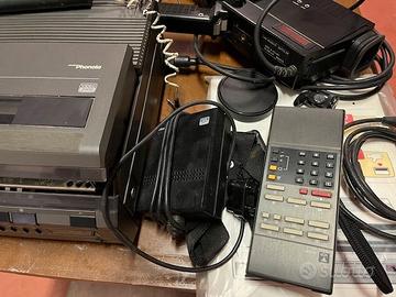 Introvabile videoregistratore Phonola portabile 2000 con telecamera fermo da tantissimi anni, non funzionate da revisionare composto di tutte le sue parti e documenti con istruzioni telecamera e telecomando, il portatile si accende ma da sbloccare e sicuramente da cambiare gommini , cinta originale cavi e microfono. Sicuramente ci vuole una persona che se ne intende. Esteticamente messo molto bene ,telecamera senza graffi , solo da pulire