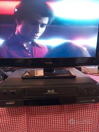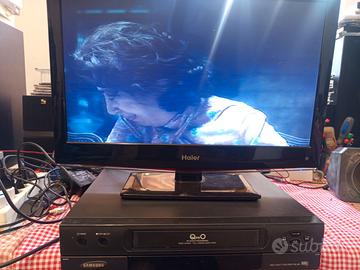 Videoregistratore VHS Samsung VXK-306 funzionante. ATTENZIONE, non ha il telecomando ma si possono fare le funzioni di base dal videoregistratore. Come si può vedere dalle foto è funzionante ho fatto le foto mentre andava un film in videocassette. La meccanica funziona bene. Sono appena state pulite le testine. Anche se ha circa 20 anni essendo un modello Samsung è un prodotto di buona qualità. I cristalli liquidi hanno perso luminosità e si vedono sbiaditi.