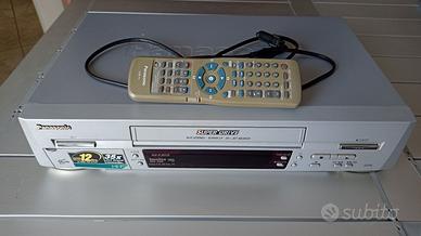 Occasione da non perdere per collezionisti di VHS e per trasferimento di video! Videoregistratore Panasonic NV-FJ625 completo di telecomando e cavo di alimentazione in ottime condizioni, usato pochissimo.