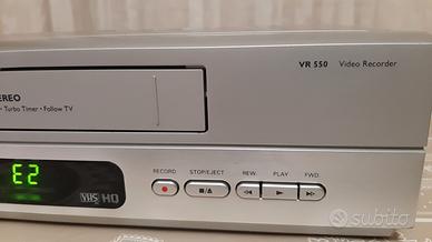 Videoregistratore Philips VR 550 turbo drive esteticamente perfetto ma nel funzionamento a volte mangia il nastro e a volte nell'accensione si sente un rumore di motorino che gira e non entra la cassetta per cui lo vendo come non funzionante e per pezzi di ricambio. È senza telecomando.