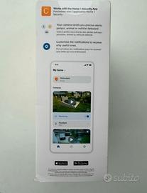 Videocamera esterna Full HD 1080p con campo visivo di 100°, visione notturna a infrarossi (15 m), microfono integrato e luce LED intelligente regolabile da 12 W. Include sirena da 105 dB per allarme sonoro immediato.
