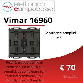 Articoli di negozio, mai usati in confezione originale -VIMAR 16955 - Interfaccia per comandi tradizionali -VIMAR 16956 - Ricevitore per telecomandi IR -VIMAR 16960 - 2 pulsanti semplici -VIMAR 16961 - 2 pulsanti basculanti -VIMAR 16965 - 2 pulsanti semplici + relè Se hai altre richieste, scrivici