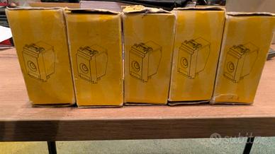 vendo 5 prese TV/sat Vimar idea 16306.10 , mai installate sono un avanzo dei lavori. Prezzo: Singolo pezzo: 5 € Offerta Blocco (5 pezzi): 20 € (risparmi 5 €!) Modalità di consegna: Ritiro a mano a Roma. Eventuale spedizione a carico dell'acquirente. Contattami per maggiori informazioni o per accordare il ritiro.