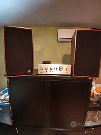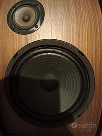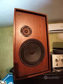 RCF un nome una garanzia, tanto che queste casso tra qualche anno compiranno mezzo secolo di vita! Tenute maniacalmente, è comunque inevitabile che qualche segno del tempo si è palesato; la verniciatura sulle basi di appoggio è leggermente sbiadita (a richiesta con supplemento posso fornirle completamente restaurate) ma è sufficiente un po' d'olio di limone ogni tanto per farle splendere. Mai fatte riconare perché non necessario. Non potentissime (30W di picco) hanno un ottima risposta per ogni tipo di musica. Bassi molto morbidi e alti penetranti grazie a due vie perfettamente equilibrate. Non scordiamoci che RCF ancora oggi produce casse e componenti riconosciuti a livello mondiale. Insomma chi le acquista porta a casa oggetti da collezione che hanno una storia lunga mezzo secolo. Sul mercato si trovano da 50€ sino ai 150€. Io so il loro valore quindi il prezzo esposto non è trattabile a meno che non veniate a ritirarle con vs mezzi.