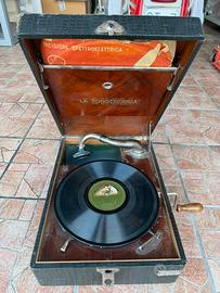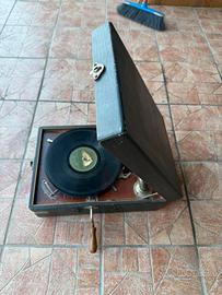 Affascinante grammofono portatile risalente agli anni ’20. Un autentico pezzo di storia della riproduzione musicale, perfetto per collezionisti, amanti del vintage o per arredare con stile retrò.