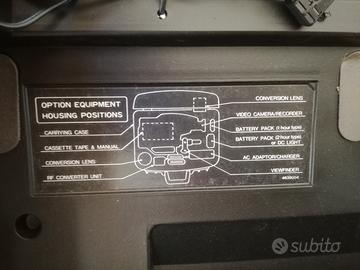 Vintage Video camera/Recorder NTSC, made in Japan, completa di custodia rigida e accessori nonché ulteriore batteria.