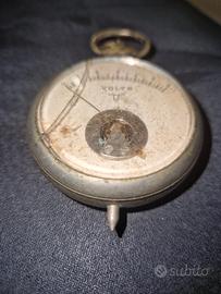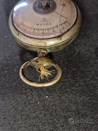 voltometro d'epoca, forma simile ad un orologio da taschino. misura fino a 6 Volt. segni di usura e vetro incrinato.