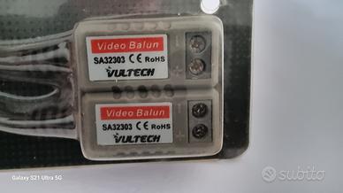 Si tratta di una confezione di una coppia di trasmettitori video balun passivi del marchio Vultech Security, modello SA32303.