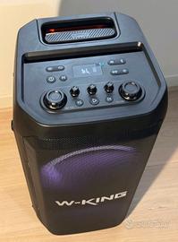 Descrizione Cassa audio W-KING 12 praticamente nuova, Utilizzata per un matrimonio Sempre tenuta nella sua scatola. Suono molto potente e di alta qualità, ideale per feste, eventi o uso domestico. La batteria ha un'ottima autonomia e la connessione Bluetooth è stabile e veloce. Nessun difetto, condizioni pari al nuovo. Prezzo:289 euro.