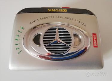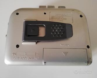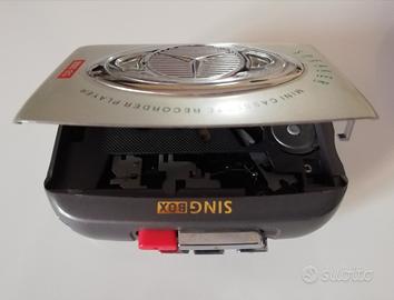 Walk man cassette marca SIG BOX, con ascolto sia in cuffie che in altoparlante. Funziona con due batterie da 1,5 V AA e con adattatore (non inclusi). Oggetto usato ma in perfette condizioni estetiche e di funzionamento.