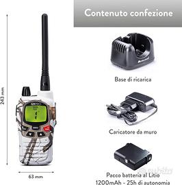 PRESTAZIONI SUPERIORI PER ATTIVITÀ OUTDOOR: Midland G9 PRO è la scelta ideale per attività all’aperto, grazie alla nuova antenna da 12 cm che massimizza la potenza di trasmissione. Con 8 nuovi canali PMR446 "senza licenza," raggiunge un totale di 101 canali, eliminando sovrapposizioni e garantendo comunicazioni chiare e affidabili in tutta Europa. La finitura originale Moassy Oak White storm rende ogni radio unica e inconfondibile