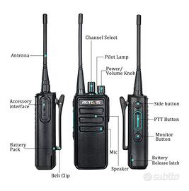 Vendo coppia di walkie talkie Retevis RB629 con auricolari inclusi. Ideali per sicurezza, eventi, lavoro di squadra, ristoranti o attività all’aperto.
