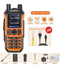 BaoFeng UV-21 PRO V2 50 KM Walkie Talkie Trasmittente Dual Band Lungo Raggio NEW DISPONIBILE COLORE ARANCIO, VERDE E NERO.