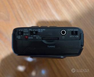 Questo dispositivo è un lettore di cassette stereo con radio FM/AM Aiwa TA123. Caratteristiche: Include un sintonizzatore "super sensitive" e la funzione "super bass" per migliorare le frequenze basse. Funzionamento: È un dispositivo portatile alimentato da batterie AA. Stato: È un oggetto da collezione vintage, spesso venduto come funzionante o da testare. È considerato un oggetto da collezione tecnologico degli anni '90 o primi 2000.