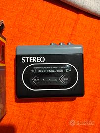 walkman player cassette stereo International. Nuovo mai usato. Cuffie vintage nuove incluse.