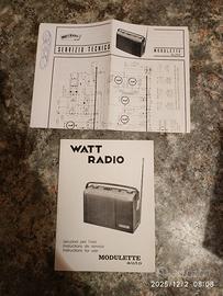 Watt Radio Modullette Auto in buone condizioni, sono un po' sbiadite le varie scritte dei comandi, antenna apposto, non è stata provata perché non ho le batterie ( 2×4,5 volt). Libretto originale di istruzioni e schema. Era stata studiata per utilizzo in auto. Vendo visto e piaciuto, spese di eventuale spedizione a parte. Guardate anche gli altri miei annunci, grazie.
