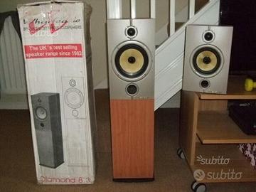 Coppia di diffusori wharfedale 8.1 diamond, bass reflex anteriore, woofer in kevlar sospensione in gomma con ogiva da 13.0 cm e tweeter a cupola in seta da 1 pollice ferro fluido, frequenza da 55 hz 20.000 khz sensibilita 86 db impedenza 6 ohm, potenza 100 watt, bi-wiring , tutti i componenti sono rigorosamente originali e perfetti compresi i mobili, disponibili anche le 8.3 diamond e il centrale tutto come nuovo solo esposto in vetrina. se digitate lele46 troverete molti altri prodotti. Il mio recapito telefonico è 3401627993 Emanuele