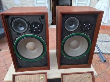 Coppia di diffusori in ottime condizioni estetiche e tecniche, con qualche segno del tempo, lucidati completamente con olio cera d'api, molto belle, le retine sono sane, una ha una macchia credo pulibile.