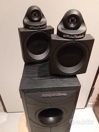 Vendo sistema 2.1 satelliti e subwoofer Wharfedale modus sub-bass all'interno doppio woofer da 170cm ,altezza 50cm,profondità 38.5,larghezza 22cm,satelliti a 2vie woofer da 10cm,con tweeter a cupola da 2,5cm,altezza 24cm,larghezza 14,5cm,profondità 12cm,in buone condizioni 100w di potenza ,suona benissimo, un ottima soluzione per un un'amplificatore