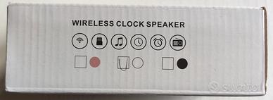 Wireless Clock Speaker di colore bianco e grigio, orologio sveglia wireless con altoparlante. Made in China. Come da foto, nuovo. Ottima idea regalo. Ideale per tutti coloro che cercano un orologio sveglia, che è anche uno speaker wireless, da cui si può ascoltare la musica, collegando il proprio telefono.