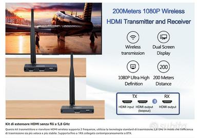 Trasmettitore e ricevitore wireless HDMI, segnale fino a 200m, 1080p@60hz.