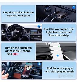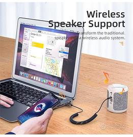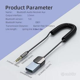Adattatore Bluetooth Aux, ricevitore wireless Bluetooth v5.0 da USB a jack da 3,5 mm, ingresso AUX per chiamate in vivavoce, Plug & Play, accensione automatica per altoparlanti auto, audio domestico