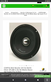 Coppia di woofer SPL, bassface 20cm diametro,alta efficenza 100db, 300w RMS vendo a soli 50euro perché uno ha la bobina rotta per un urto.