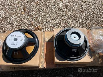 Vendo coppia di woofer perfettamente funzionanti da 25cm e 4 ohm. Molto potenti, si spingono fino a 300 Watt. Quello giallo ha il cono in kevlar mentre latro ha il doppio magnete. Nuovi costano parecchio. Vendo anche separatamente. Formula visto e piaciuto.
