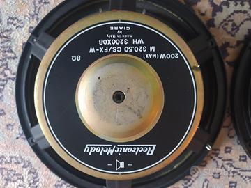 Vendo coppia di Woofer Electronic Melody by Ciare mod. M 320.50 CS/FX-W WH 3200x08 - 8 Ohm 200w. max. Sono in più che buone condizioni con normali segni di usura. Foam in buone condizioni non necessitano di sostituzione. Si vende nella forma visto e piaciuto senza garanzia e possibilità di reso.