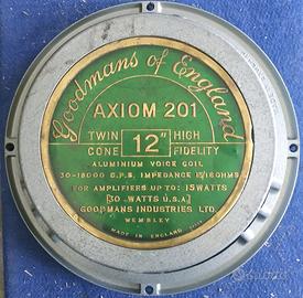 Woofer biconico HI-FI Goodmans of England modello Axiom 201 non funzionante con bobina interrotta per chi possiede recone kit o vuole cimentarsi nella riparazione; il prezzo per una coppia di questi funzionanti nel mercato dell'usato si aggira sui 400€ Prezzo 60€, posso spedire in tutta italia con 10€ anche se non mi assumo la responsabilità di danni dovuti ai corrieri, pagamento paypal o bonifico Sul mio profilo ho molti altri annunci di materiale audio e luci