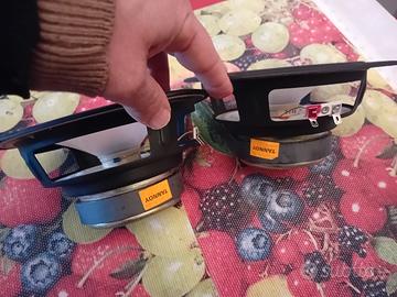 Altoparlanti midwoofer per diffusori casse Tannoy P10 ( anche per le P20??), di cui UNO perfettamente funzionante, mentre l'altro no ( gracchia e, quindi, sarà in regalo). L'eventuale accurata spedizione sarà effettuata con gli altoparlanti agganciati " faccia a faccia" per proteggere le membrane ( vedi foto). Grazie