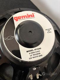 Causa cambio progetto vendo coppia di bellissimi woofer Gemini made in USA (fabbricazione Eminence) di diametro 38 cm. Gli altoparlanti sono in perfette condizioni e pronti da utilizzare.