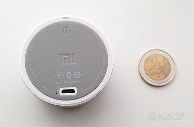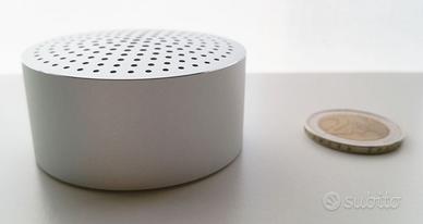 Original Xiaomi Bluetooth Mini Speaker Portable Wireless Bluetooth 4.0 Stereo Music Square Box Built-in microphone for hands-free phone calls Description: This is a super portable, round design Bluetooth V4.0 speaker, which make it easy to hear whatever is playing anywhere. 2W audio driver that produces sound louder than ordinary single speaker, giving you an extraordinary audio experience. CVC6.0 noise reduction system is suitable for using in the office, home, outdoors or party. Main Features: ● Bluetooth V4.0 technology, compatible with most Bluetooth-enabled devices including iPhone 6S Plus, 6S, 6, 6 Plus, Samsung Galaxy S6 Edge, S6, etc.. ● Powerful connection range can be up to 5 meters in open area. ● Built-in microphone for hands-free phone calls. ● With a rechargeable lithium battery which offers 4 hours of continuous playback. ● Supports song switch, volume control via your Bluetooth device. Primary Features Brands: Xiaomi Design: Portable,Stylish Compatible with: iPhone,iPod,Laptop,Mobile phone,MP3,MP4,MP5,PC Supports: Bluetooth,Hands-free Calls,Volume Control Connection: Wireless Interface: Micro USB Audio Source: Bluetooth Enabled Devices Material: Aluminum Color: Silver Bluetooth version: V4.0 Other Parameters Power Source: USB Lasting Time: 4 Hours Battery Information Battery Type: Lithium Battery Dimension and Weight Product weight: 0.058 kg Product size (L x W x H): 5.20 x 5.20 x 2.50 cm / 2.05 x 2.05 x 0.98 inches Package Contents Package Contents: - 1 x Original Xiaomi Mi Bluetooth 4.0 Speaker Color Silver - 1 x Chinese Manual - 1 USB cable Condizioni Nuovo, ricevuto come regalo, perfettamente funzionante, si vende per totale inutilizzo! Confezione aperta solo per verificarne l'integrità, la funzionalità e scattare le foto. Il manuale è in cinese ma non è necessario in quanto è sufficiente accendere lo speaker per essere poco dopo riconosciuto dal vostro dispositivo tramite connessione bluetooth.